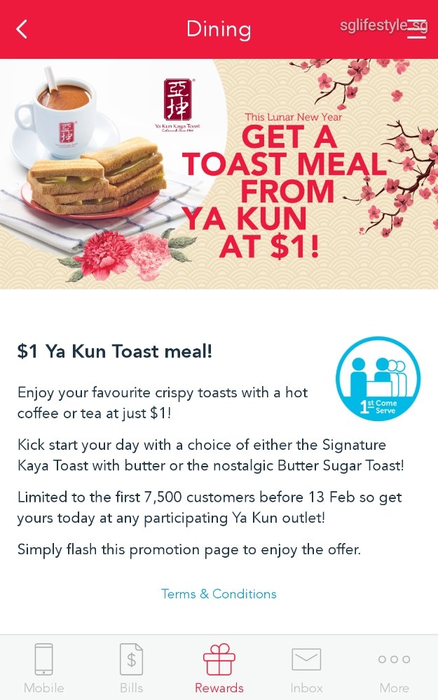 Valid for the first 7,500 customers from 7 – 13 February 2019 only at ALL Ya Kun outlets except Takashimaya / Changi Airport T2 / POMO / Far East Square / Shell @ Jalan Ahmad Abraham!