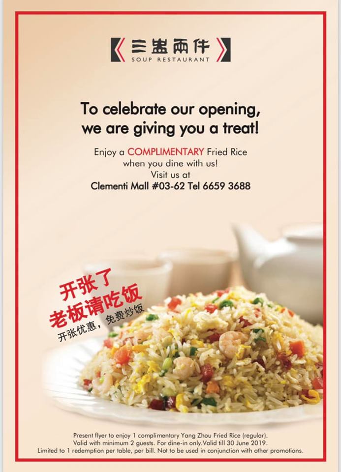 LOBANG: FREE YANG CHOW FRIED RICE FROM SOUP RESTAURANT SINGAPORE!