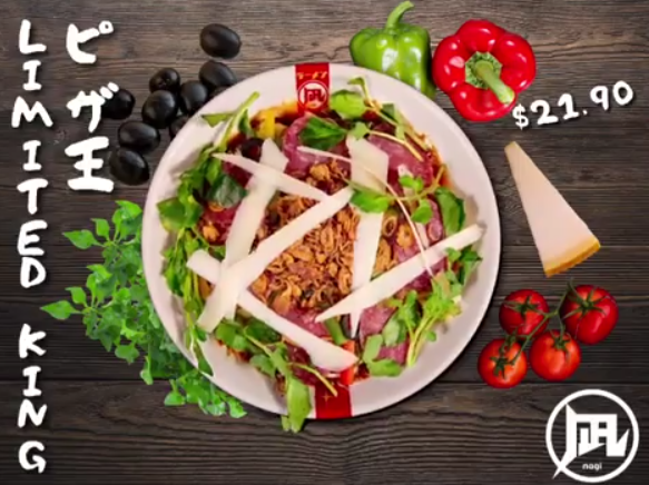 An all-new DRY ramen with the first ever THICK noodles in Ramen Nagi. Ingredients like mix cheese, fried onions, sweet basil, calpas & cresson brings a whole new experience right to your mouth! Craving for both Japanese and Western food? Pizza King is the answer. – Ramen Nagi Singapore