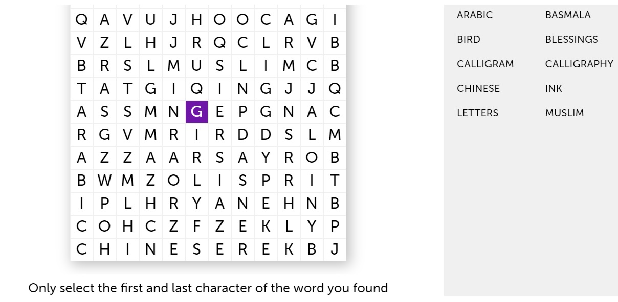 You can explore a bird calligram displayed in the Islamic Art Gallery with a fusion of cultures and influences. Thereafter, challenge yourself with a word search. Visit site to PLAY.