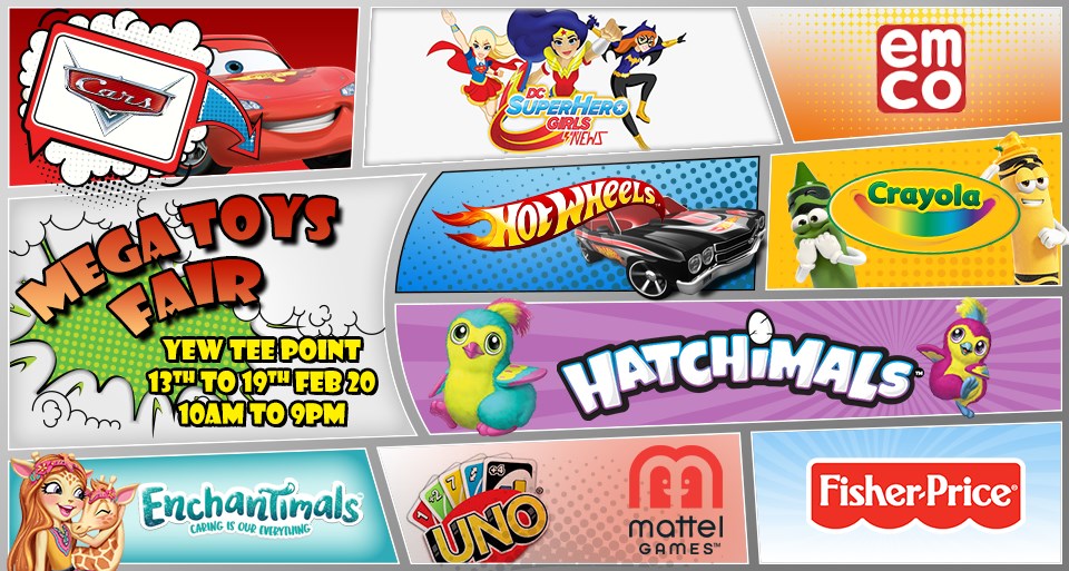 Mega Toys Fair coming over to Yew Tee Point. Major brands on offer including Cars, Uno, Fisher Price, Hot Wheels, Hatchimals and more! Offering great discount. Drop by and Grab the offers.